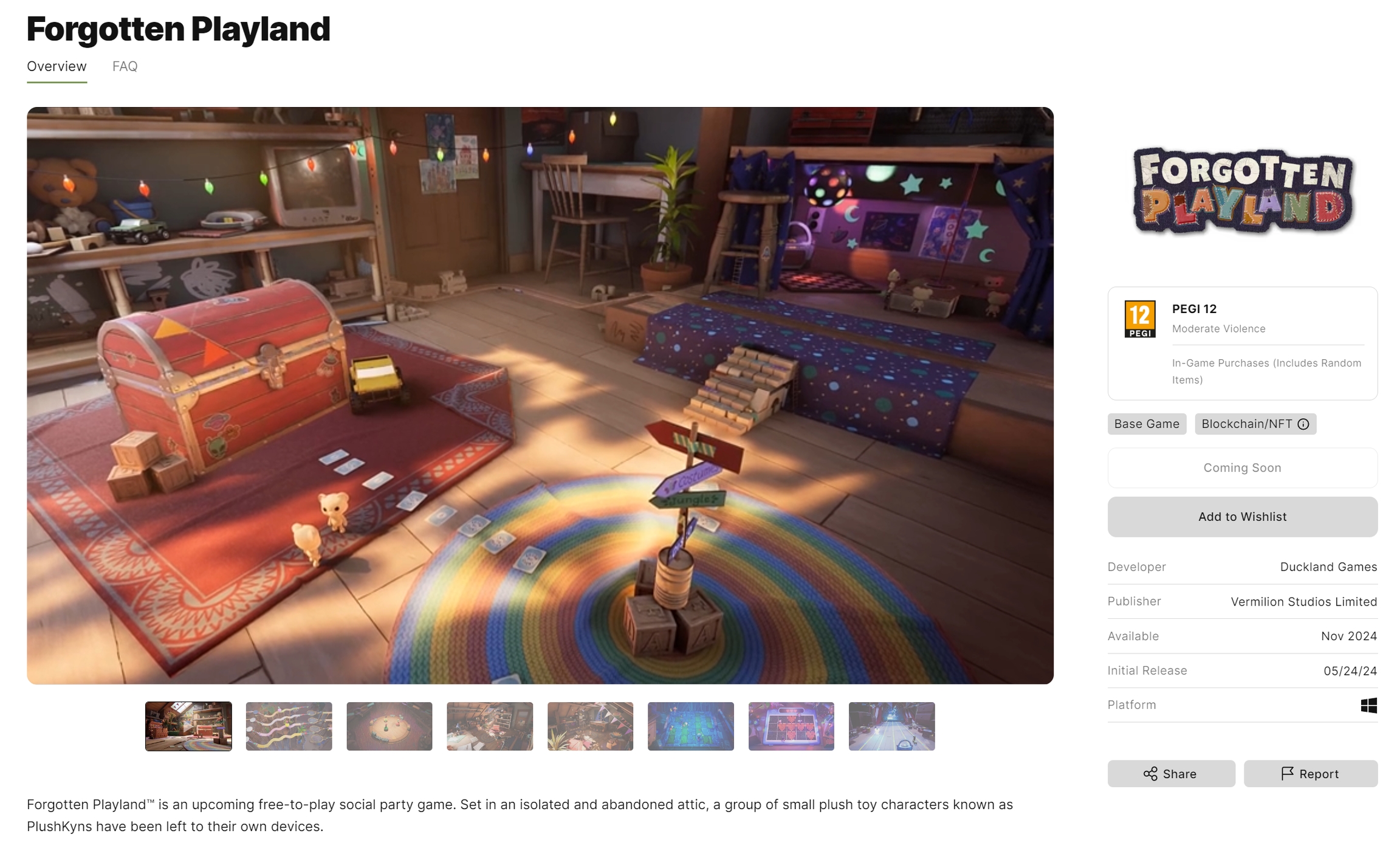Forgotten Playland™ es un party game social gratuito. Ambientado en un ático abandonado, un grupo de pequeños personajes de peluche conocidos como PlushKyns han quedado olvidados a su suerte.