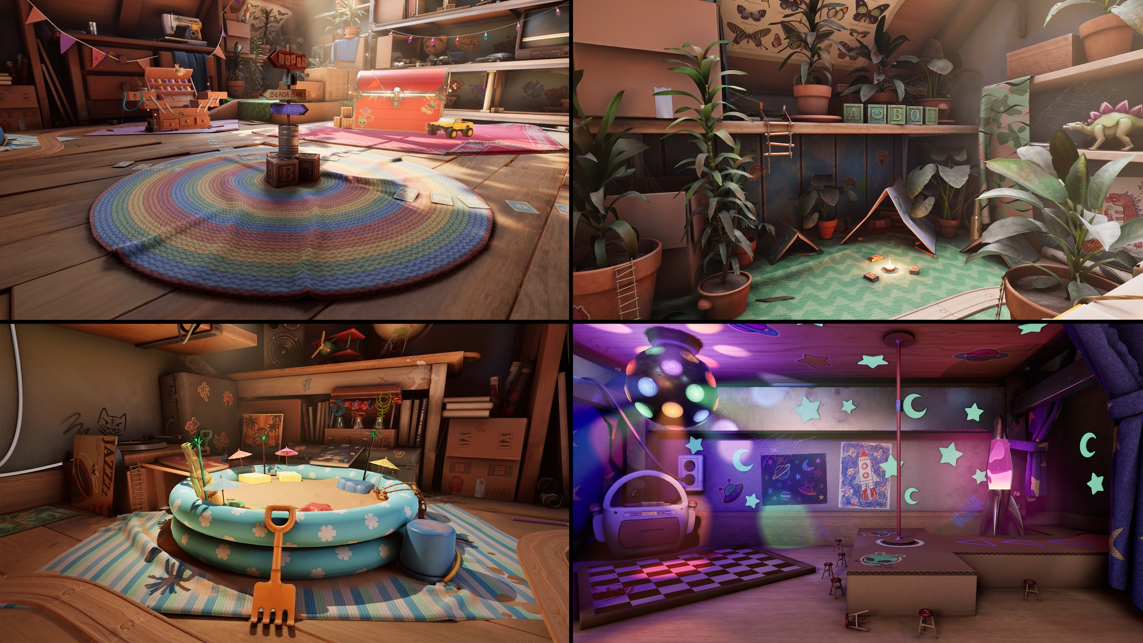 Las áreas temáticas funcionan como diferentes distritos dentro del Social Hub, cada uno dedicado a un tema o ambiente específico. Ya sea que busques disfrutar los ritmos emocionantes de la Zona de Discoteca Espacial, el encanto salvaje de la Zona de Campamento en la Jungla, la nostalgia del Área de la Estación de Tren o relajarte bajo el sol de la Zona de Bar en la Playa, hay un rincón diseñado para cada gusto.