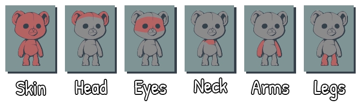 Los jugadores pueden personalizar hasta seis rasgos diferentes de sus PlushKyns mediante el uso de cosméticos: