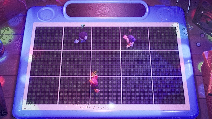 Los jugadores compiten en un juego de pensamiento rápido y reflejos relámpago, donde deberán mantener su posición y ocupar el cuadrado que coincida con la imagen mostrada en la pantalla.