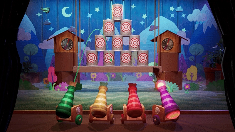 Los jugadores salen disparados de sus cañones para estrellarse contra latas y derribarlas por puntos. Sé el primero en anotar 10 puntos para asegurar la victoria.