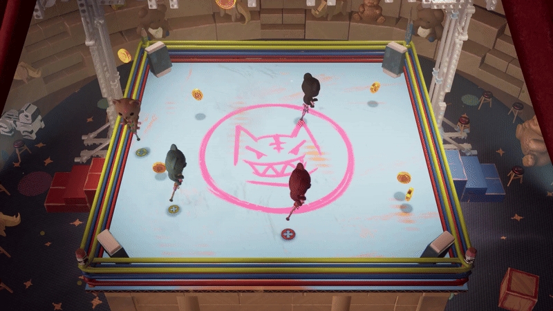 Los jugadores saltan al paisaje encantador de Pirueta Pirata, donde deben recolectar la mayor cantidad de monedas posible. Hay un número limitado de monedas, por lo que usar el ataque giratorio de los jugadores es crucial para arrebatarles monedas a los oponentes.
